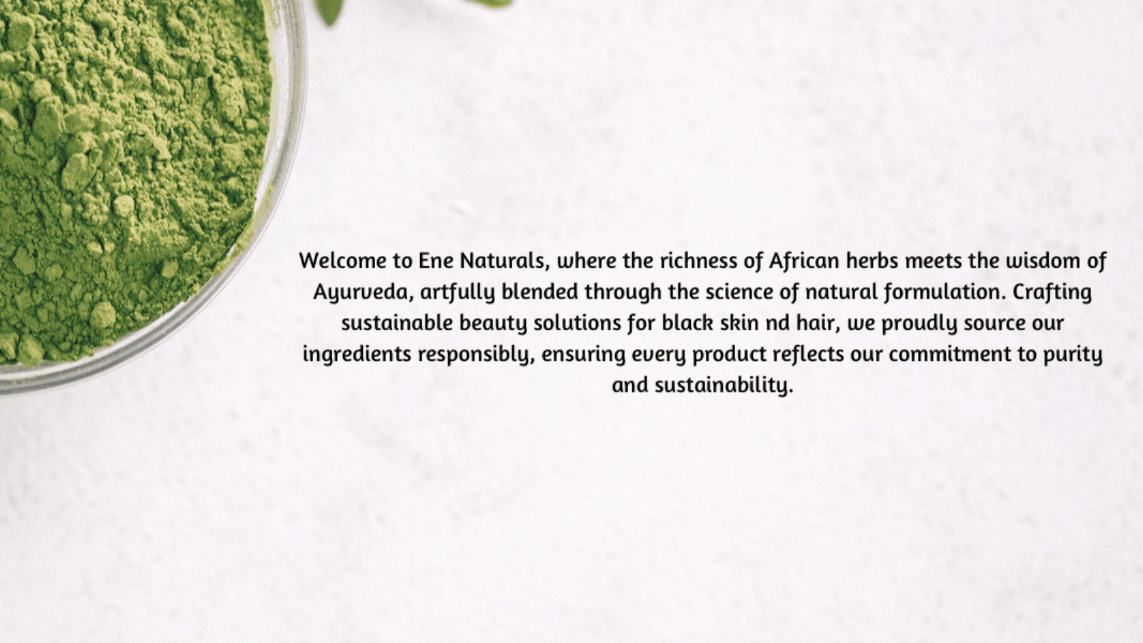 Welcome to Ene Naturals, where the richness of African botanicals meets the wisdom of Ayurveda, thoughtfully brought together through the science of natural formulation. At Ene Naturals, we create natural skincare and haircare products specially formulated for melanin-rich skin and afro-textured hair. Our products are designed to help with dry skin, hyperpigmentation, hair growth and healthy skin using natural and organic ingredients.